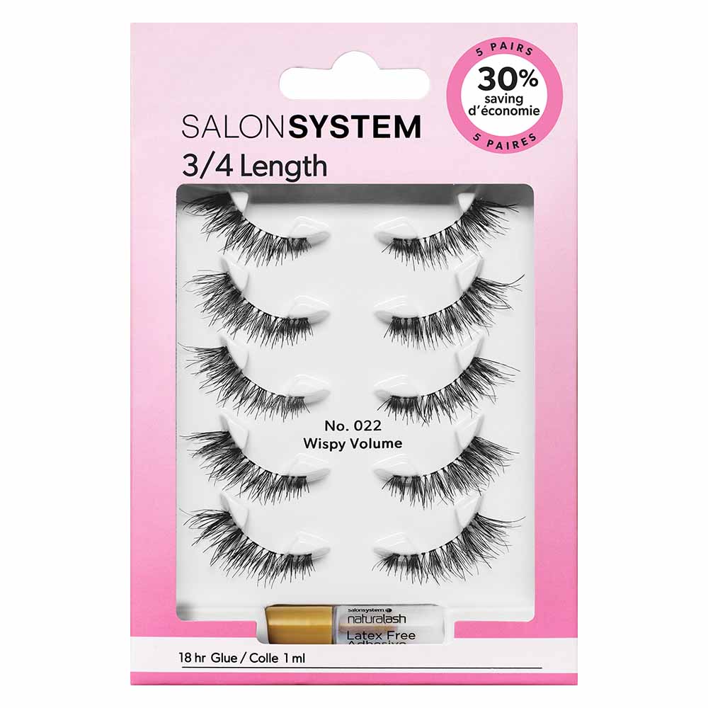 Salon System Strip Lash 022 3/4 Length, Pack of 5