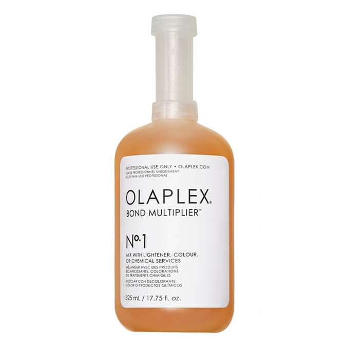 - Mix the Olaplex No.1 Bond Multiplier in with your client’s bleach or colour treatment. Leave in the hair for as long as the colour treatment takes to develop and rinse out.