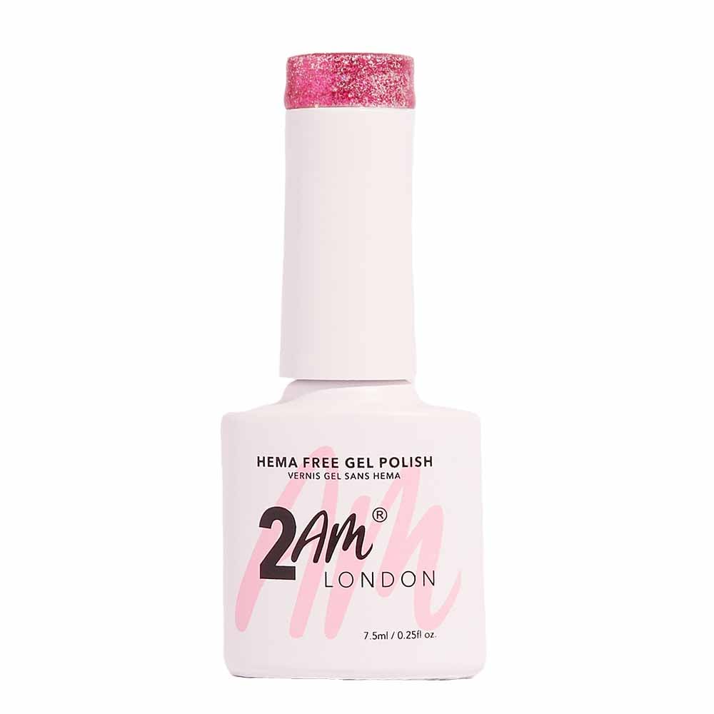 Your place or mine? Time to turn things up a notch and this raspberry pink glitter will have you going all night long. Set your timer to 60 seconds. 2AM London gels cure in LED light, with a wear-time of up to 3 weeks! All gels are hema-free, cruelty free and vegan friendly.