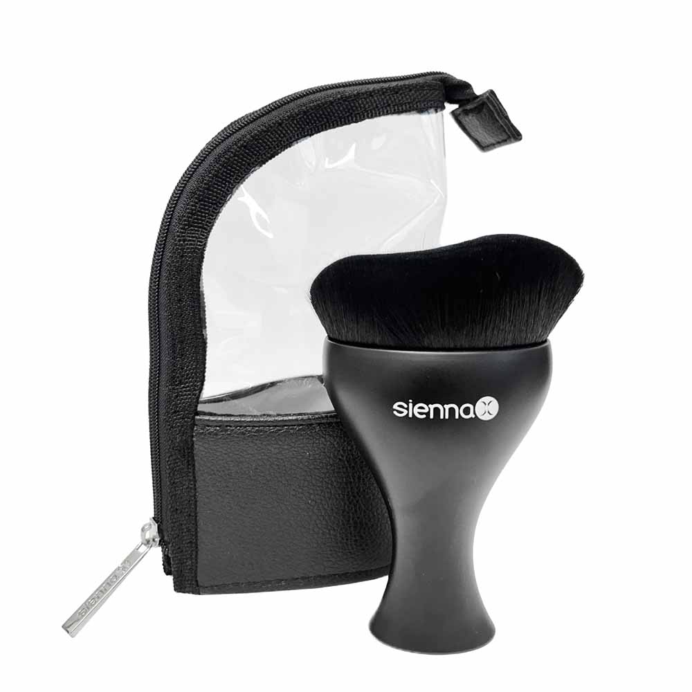 Designed for precision and ease, the Sienna X Tanning Brush is the perfect tool for blending and perfecting self-tan or spray tan applications. Made with ultra-soft, 100% vegan synthetic bristles, this dense brush effortlessly buffs tanning products into the skin for a smooth, streak-free result. Its angled head and ergonomic handle make it ideal for reaching tricky areas like hands, feet, elbows, and knees. 100% Vegan Synthetic Hair ABS handle, packaged in a reusable zip leatherette bag to keep the brush clean. Whether correcting excess product during spray tans or applying tan to specific areas, this brush is a must-have for both salon professionals and home users alike.